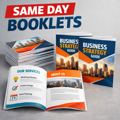 Our same day stapled booklet printing is built for when you need books urgently. Upload your artwork, approve the proof, and we'll print and finish your booklets the same day so they're ready for collection when you need them.